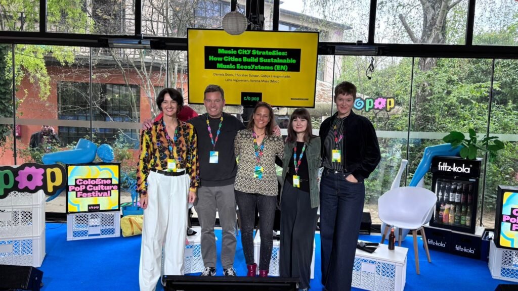 „c/o pop Convention“ – nuo 2004 m. Kelne vykstanti Vokietijos muzikos industrijos konferencija, kasmet suburianti muzikos verslo, kultūros politikos, miestų rinkodaros ir festivalių atstovus. „Music Düsseldorf“ inicijuotoje panelinėje diskusijoje „Music City Strategies: How Cities Build Sustainable Music Ecosystems“ daugiausia dėmesio skirta klausimui, kaip miestai gali strategiškai plėtoti savo muzikos ekosistemas, stiprinti tarptautinius ryšius ir kurti ilgalaikį poveikį. Greta Vilniaus atstovės diskusijoje dalyvavo „Music Cities Network“ vadovė Lena Ingwersen, „D.Live“ ir „Music Düsseldorf“ atstovė Daniela Stork bei „Visit Düsseldorf“ atstovas Thorsten Schaar. Diskusiją moderavo režisierė ir Kelno universiteto dėstytoja Verena Maas.