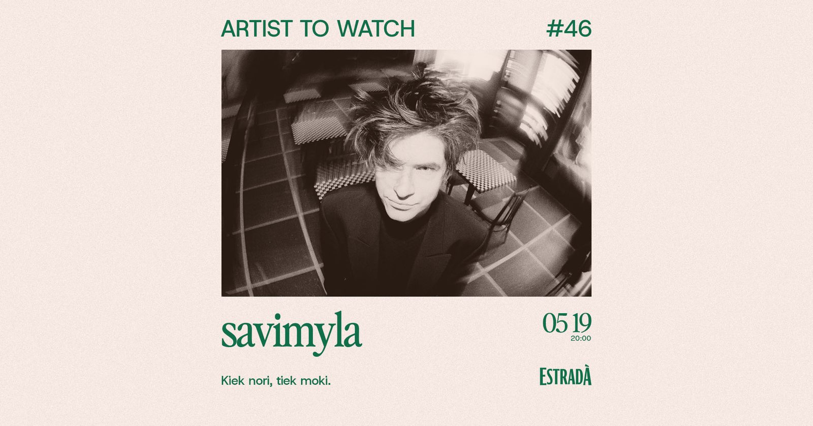 savimyla – Lietuvos muzikos scenoje labiau žinomas kaip muzikos chuliganas, jungiantis savirefleksinę lyriką ir performansą tiek scenoje, tiek už jos ribų. Kiekvienas pasirodymas neeilinis, todėl pats savimyla praleisti nepataria.