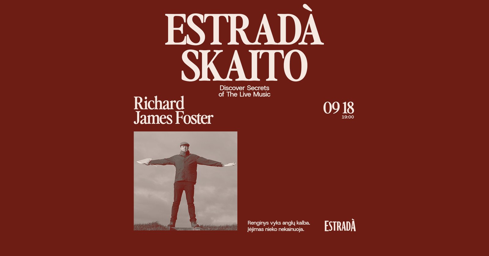 Britų kultūros rašytojas, kritikas, knygos „The Punk Rock Birdwatching Club“ autorius Richard James Foster kviečia į paskaitą-gyvus skaitymus Estrãdoj. Richard pasidalins nuotykiais legendiniame Roterdamo kultūros centre, papasakos, kaip įsitvirtinti muzikos industrijoje ir žengti į platesnę tarptautinę erdvę.