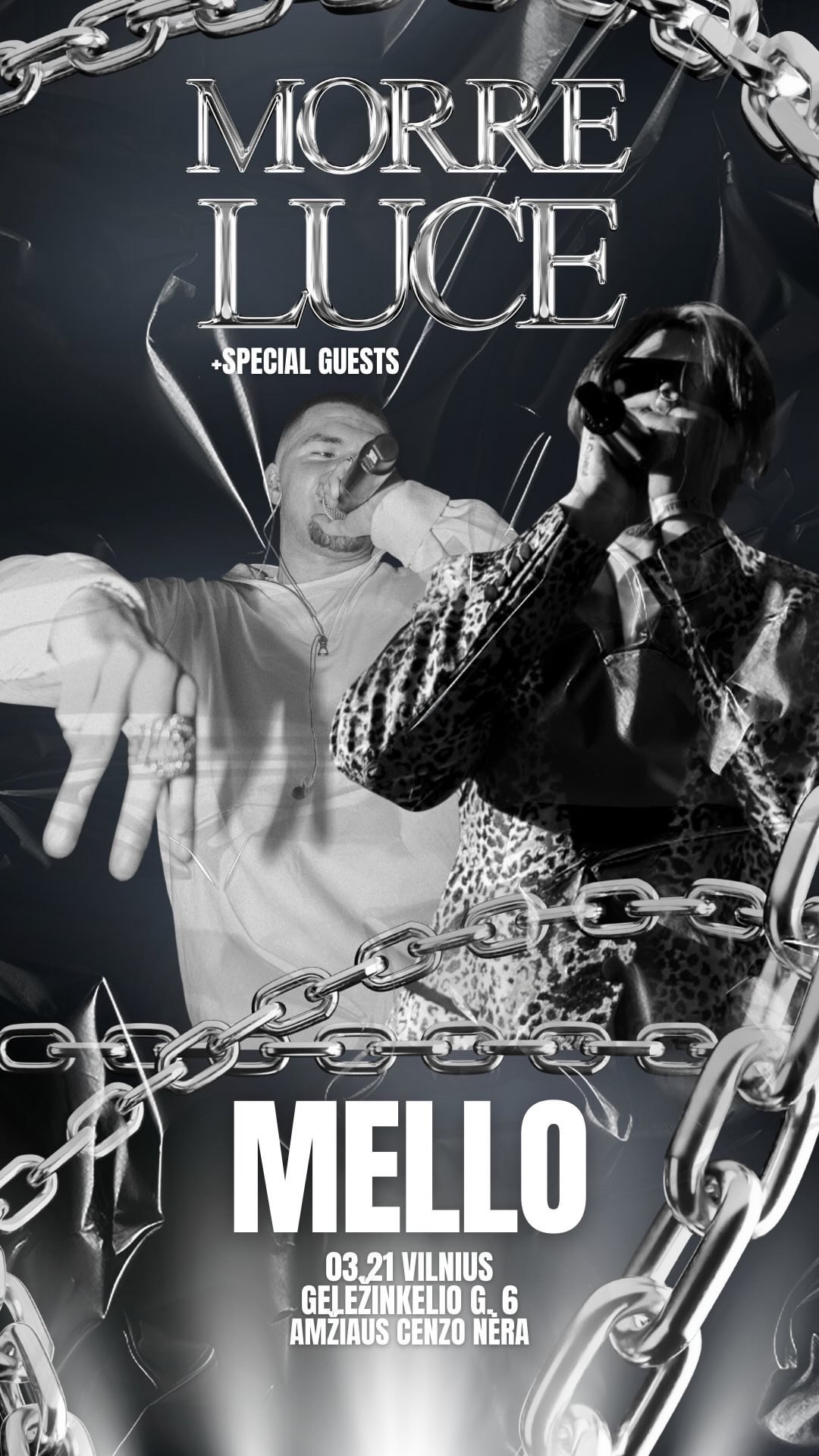 Kovo 21-ąją Mello scenoje laukia ypatingas vakaras – susitinka du pagrindiniai vakaro vardai: Morre ir LUCE!