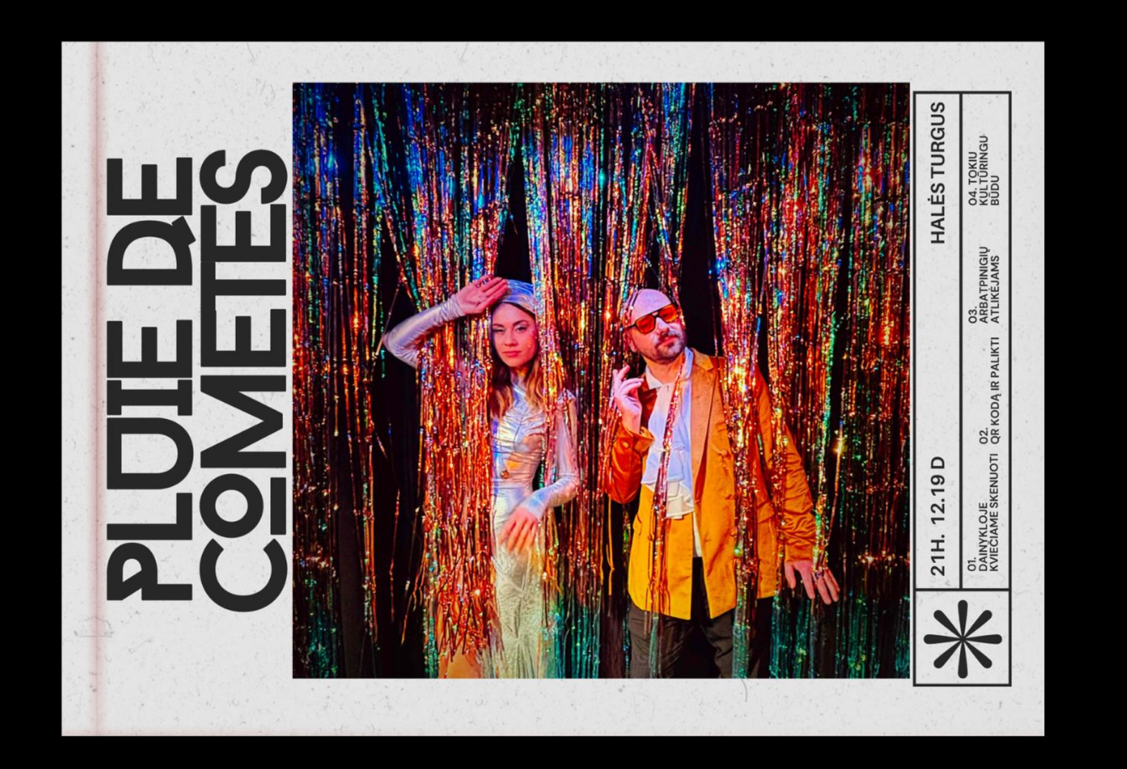 Nacionalinėje Eurovizijos atrankoje 2024 m. sužibėjęs nostalgiškos vintažinės elektroninės muzikos duetas ,,Pluie de Comètes” (liet. Kometų lietus) kviečia stebėti “krentančias žvaigždes” vienoje iš kontraversiškiausių Vilniaus vietų – Halės Turguje!